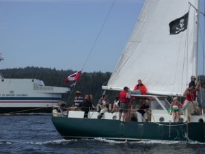 The jolly boat, modeled after a late model land yacht, is designed for raids ashore and forrays into uncharted costal villages. The cargo carrying capacity of this boat is amazing; but it is important to obey the instructions of the coxswain to keep the load stable and prevent stability problems caused by overloading. You'll see the jolly boat in Sturdies Bay, Montague Harbour, and on the chocks at Pirate's Lair while the carpenter caulks it's seams. The long boat, modeled after a nameless pirate with an over inflated ego, is used mainly for transferring pirates to and from shore when La Beal Isoud is at anchor. The long boats speed makes it ideally suited as an emergency life saving boat in the event that someone walks the plank. The long boat will be used in Montague Harbour and at Flogger's Cove. Sturdies Bay jolly boat transfersThe jolly boat will provide transportation to/from Sturdies Bay for BC Ferry sailings between 10 am Friday 22 August and 1 pm Sunday August 24. Please email First Mate Fish to confirm pick up. |