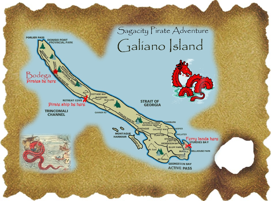 Pirates will take a ferry from Swartz Bay or Tsawwassen on Thursday, September 24th and be met by the jollyboat on the Galiano side, and transported by the hearty crew to the Pirates' Lair. They will spend Thursday, Friday, and Saturday nights at the Lair, and will be returned by shuttle on Sunday, September 27th to catch the ferry back to their respective ferry terminal.