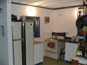 utensils, full-sized fridge and stove, microwave, blender, kettle,