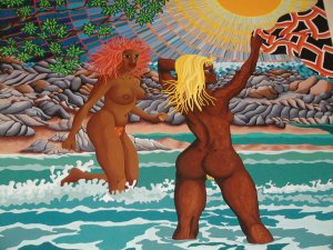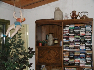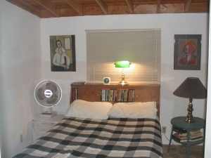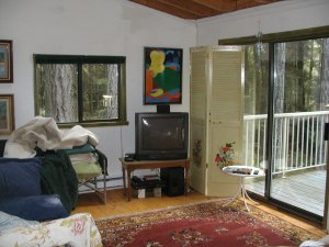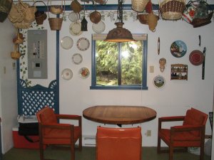 cabin is well decorated with original paintings, pottery, sculpture, and