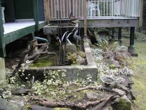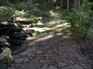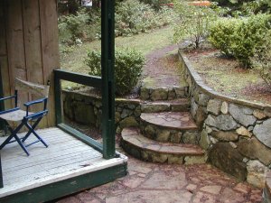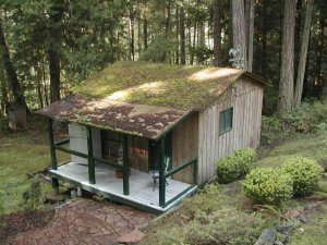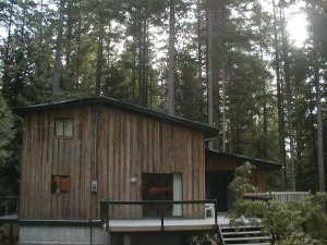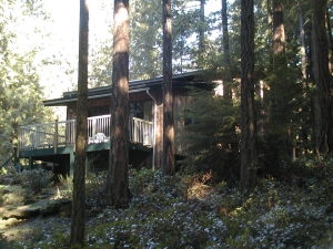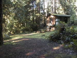 smaller cabin, viewed from the pathway from the top of the driveway. |