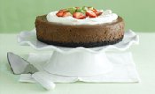 It's a funny thing (in a sadistic kind of way), but every time I decide to cheat the workday and treat myself to some time in the kitchen, the interruptions seem to come along with alarming predictability. The cats need in, the cats need out, the phone rings, the doorbell rings, and people stop by for any number of interesting reasons. Nevertheless, I remain undaunted in my quest to make a cheesecake and just before the kids arrive from school and Fisherman rolls in from Washington, I manage get my freshly baked chocolate confection out of the oven and on the cooling rack.