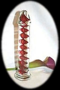 IN slow motion, you slide your special gift from its shimmering womb. Shards of light suddenly caress the walls as candlelight embraces the emerging crystal dildo like a sunrise.